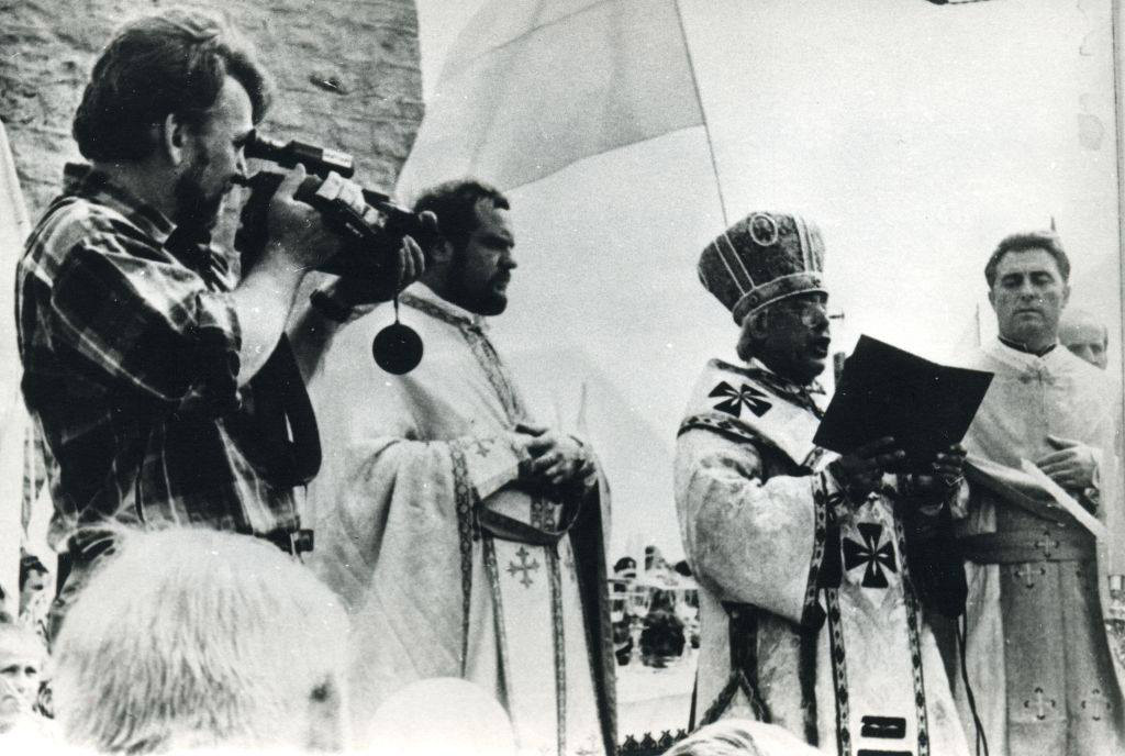 о. Григорій Сімкайло, владика Павло Василик, о. Ігор (Іриней) Білик відправляють урочисту Літургію 06.08.1989 у с. Підлисся Золочівського району Львівської області.